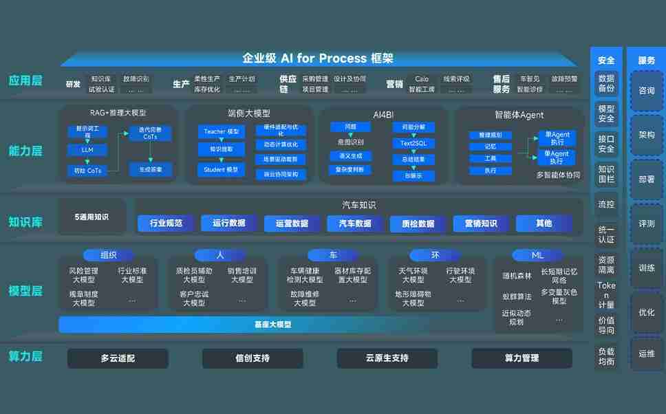 尊龙凯时问学智车解决方案是一套基于AI技术的汽车行业智能化系统,,,,覆盖从底层算力到顶层AI应用的全栈方案。。。方案由算力层、、、、模型层和应用层组成:算力层,,,方案支持多种一体机配置,,具备云端灵活部署、、、、多云适配以及动态优化计算资源的能力;模型层,,,,尊龙凯时问学平台版提供了企业级AI应用一站式构建与管理平台,,,支持基于后训练强化技术的汽车企业专属模型的训练、、、评测和运营;应用层,,尊龙凯时问学DeepSeek版提供包括超级员工、、、、智能招采、、、、智能营销、、智能客服、、AI for BI等一系列解决方案,,可助力汽车行业实现数字化转型,,,,让管理更智能、、响应更敏捷。。。。